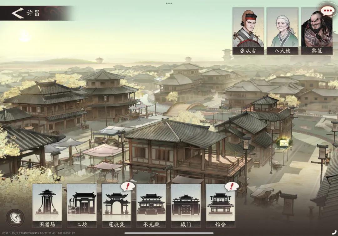 這還沒完呢。遊戲還有建築系統,直接關係到一些核心功能的解鎖,比如說打造裝備,副將數量等等。