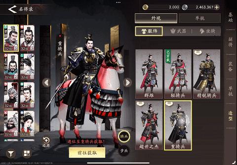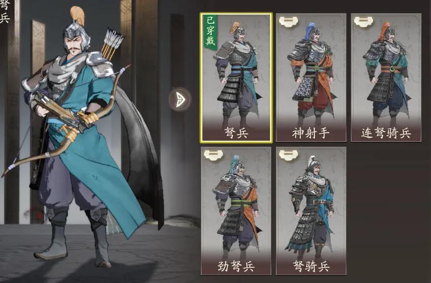 結果這遊戲每個角色不同的職業進階,都有着對應5套不同的衣服和武器,如果是騎兵或者軍需等帶有兵種,還會有坐騎、戰車、推車、工程的不同。