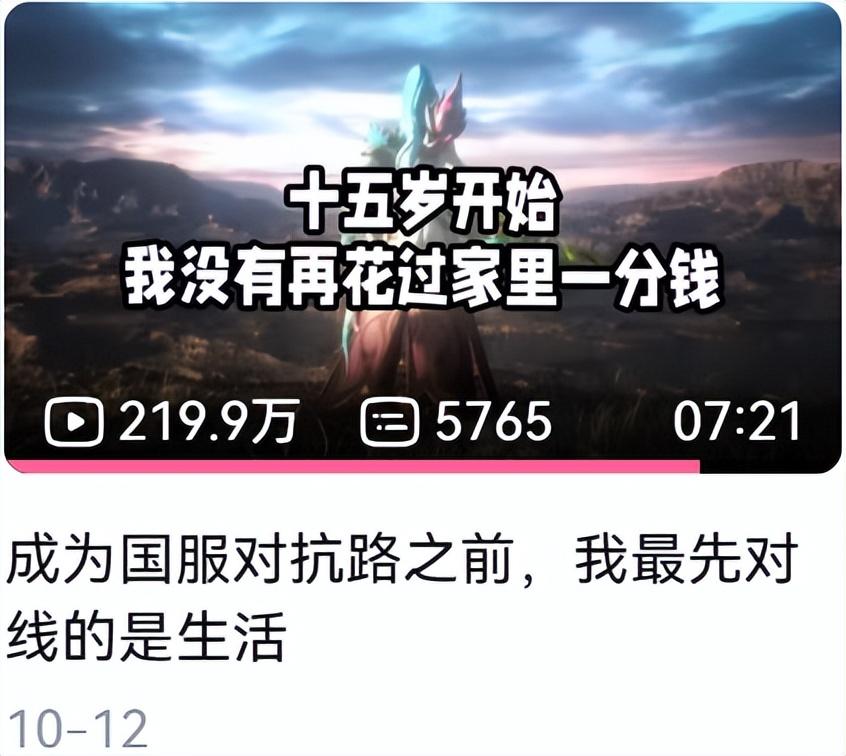 這條對抗路,恰恰映照了他的現實人生——“在成爲國服對抗路之前,我最先對線的是生活。”