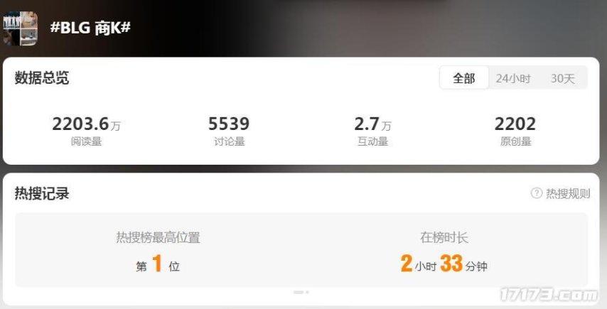 爆料貼一出,BLG勇闖商K的相關話題立刻就引來無數網友喫瓜,話題登頂微博第一,圍觀喫瓜人氣2000萬!