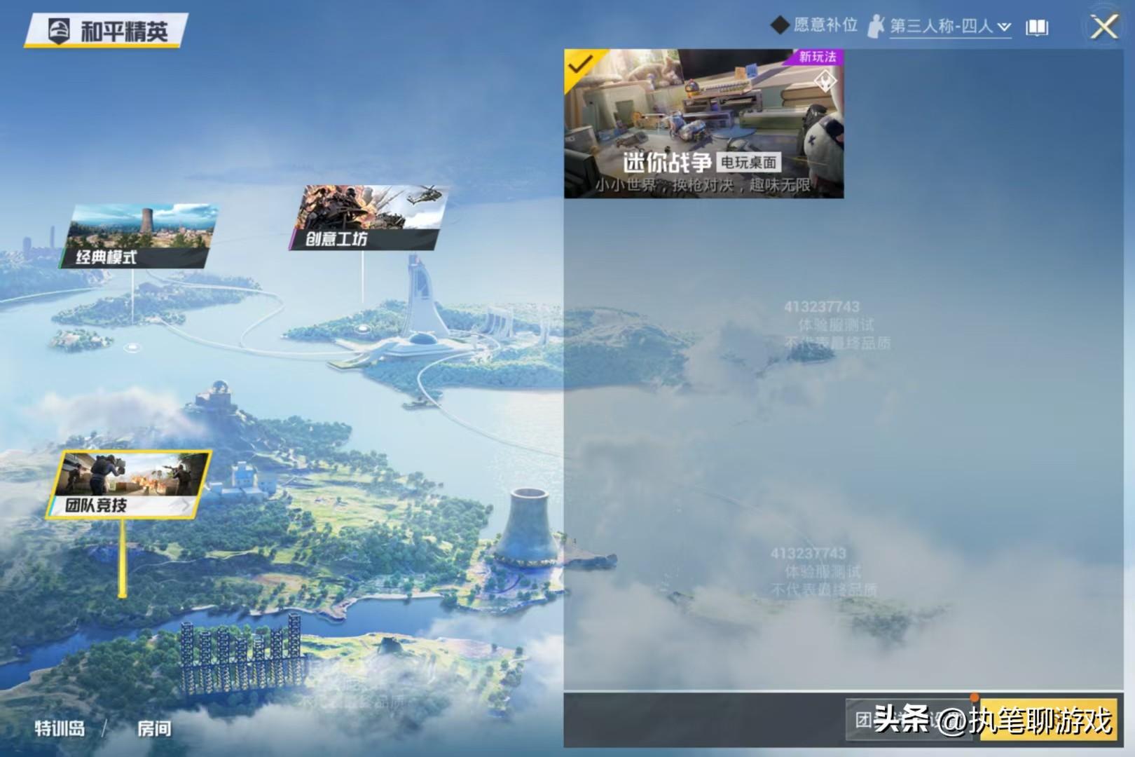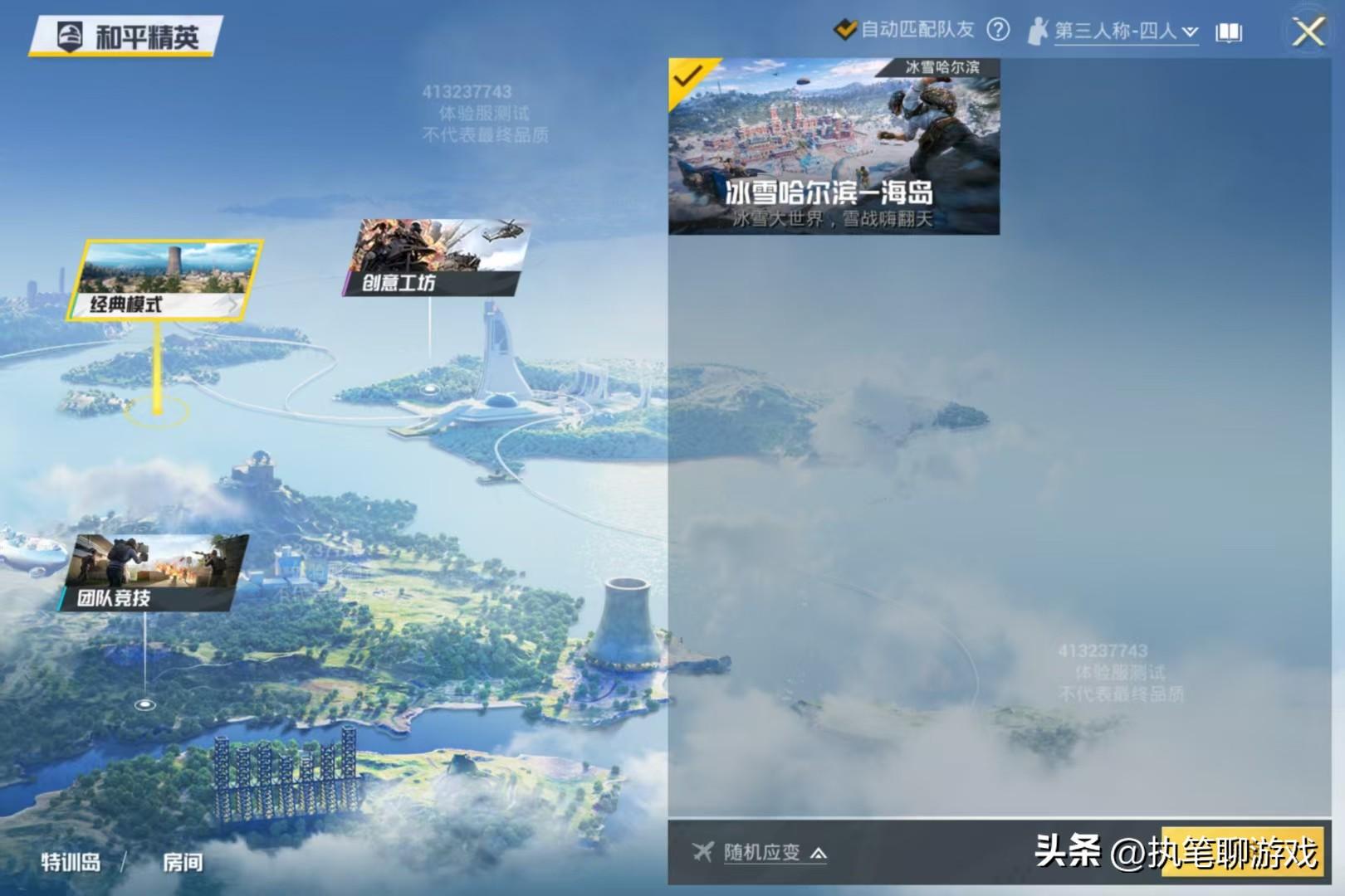 如今是開啓測試的第一天,目前僅開啓了兩個模式,一個是主題海島“冰雪哈爾濱”,一個則是來自團競新地圖的“迷你戰爭”。