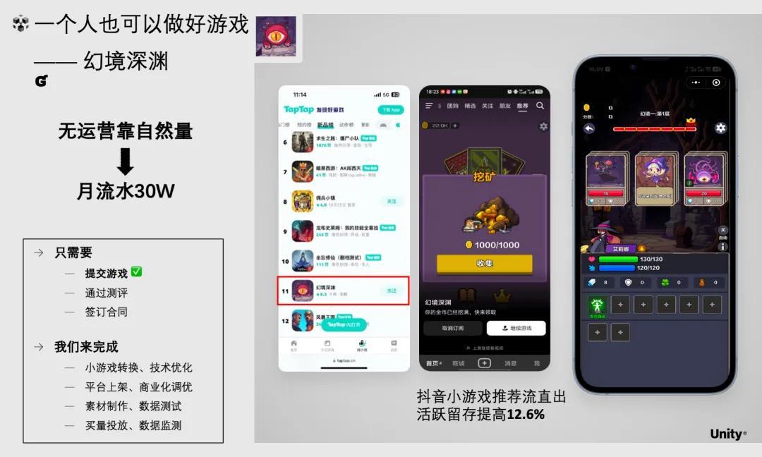 一個反常識的洞察來自Unity中國發行業務負責人王巍。他指出,當前中小團隊扎堆做原生手遊「意義不大」,反而是差異化強、創意足的小遊戲更容易突圍。