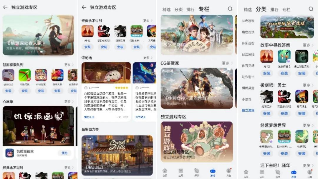 當然,鴻蒙的目標也不只是大作適配。過去半年,它在扶持中小開發者上也做了不少嘗試。華爲遊戲中心設置了獨立遊戲專區,並安排分類頁面、推薦榜單和多個入口。