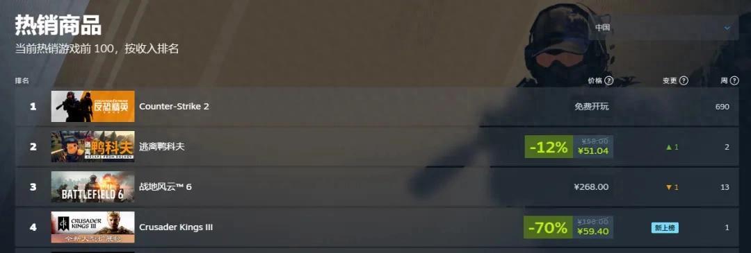 作爲《十字軍之王3》(Crusader Kings 3 以下簡稱CK3)上線以來規模最大的大型內容擴展包,很快就把《CK3》這個已經發售五年的老遊戲,重新送回了Steam暢銷榜前列。其中,國區拿到了全球最好的成績,排在第4名。