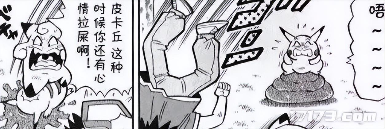 而另一部更早的寶可夢漫畫《寶可夢歡樂祭》裏,更是清一色的屎尿屁和黃色笑話,皮卡丘更是其中典型的“拉屎擔當”。