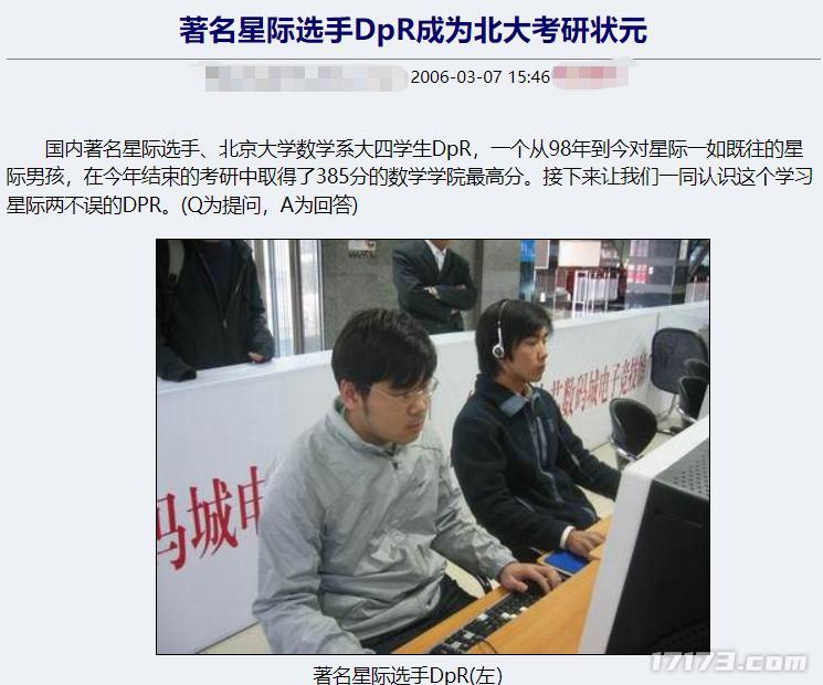 但要說起北大雙雄、星際高手DPR、中國星際圈傳奇天槍,或者是“masterasia”這個ID的話,很多人立馬就肅然起敬了。