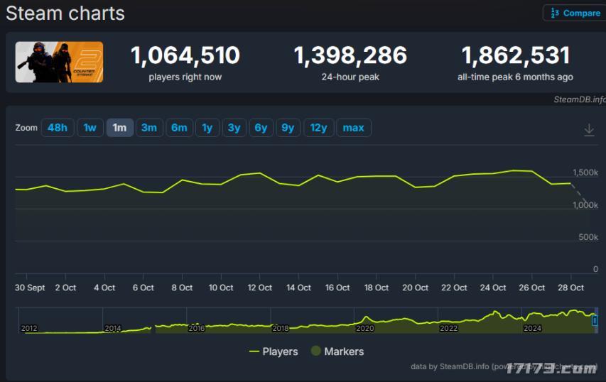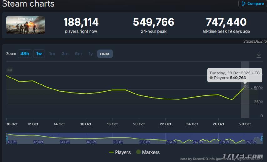 不過,跟網上的哀嚎聲不同,根據SteamDB顯示,這次市場波動並未對遊戲玩家產生多大影響,遊戲日在線峯值依舊在130w左右。