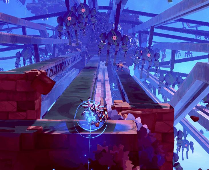 幾乎沒有任何限制的“衝刺”技能,既是玩家在各個浮島間的主要移動手段,同樣也是遊戲高速戰鬥中的一環。製作組顯然在這方面下足了功夫,讓玩家可以在“跑圖”與“戰鬥”的不同節奏中無縫轉換,共同構成了遊戲飄逸流暢的整體體驗。