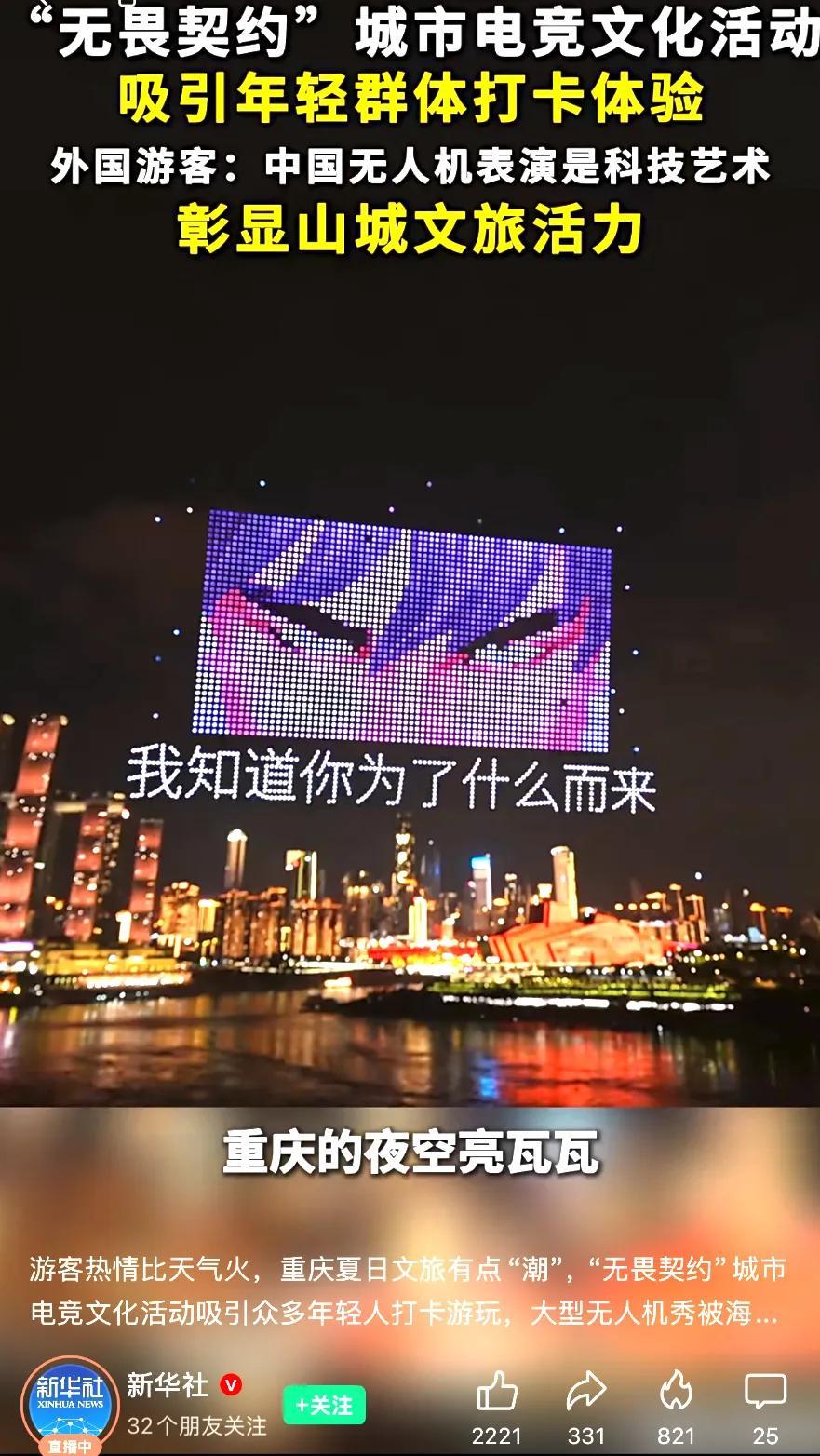 不久前,英雄壹決的無人機陣列點亮了重慶夜空。這位重慶男孩一登場,下面無論是玩家還是路過的市民,手機唰地一下全都舉了起來,都在拍這個“重慶崽兒”照亮家鄉的瞬間。