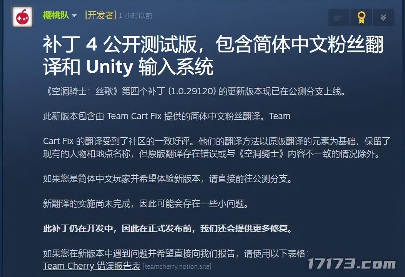 在經歷了連續兩次的中文翻譯失敗後,《空洞騎士:絲之歌》官方終於還是放棄了自己找市面上的二道販子,在最新的公告中,新版本將引進此前受到玩家好評的民間漢化組Team Cart Fix(修車組)版本翻譯。