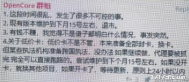 OpenCore接手後本來是計劃11月15日關停外掛服務的,說國內代理被抓完了,更讓他們感到不安的是,他們發現一些執法機構要進行跨國準備抓捕了,因此他們只能選擇關停跑路。