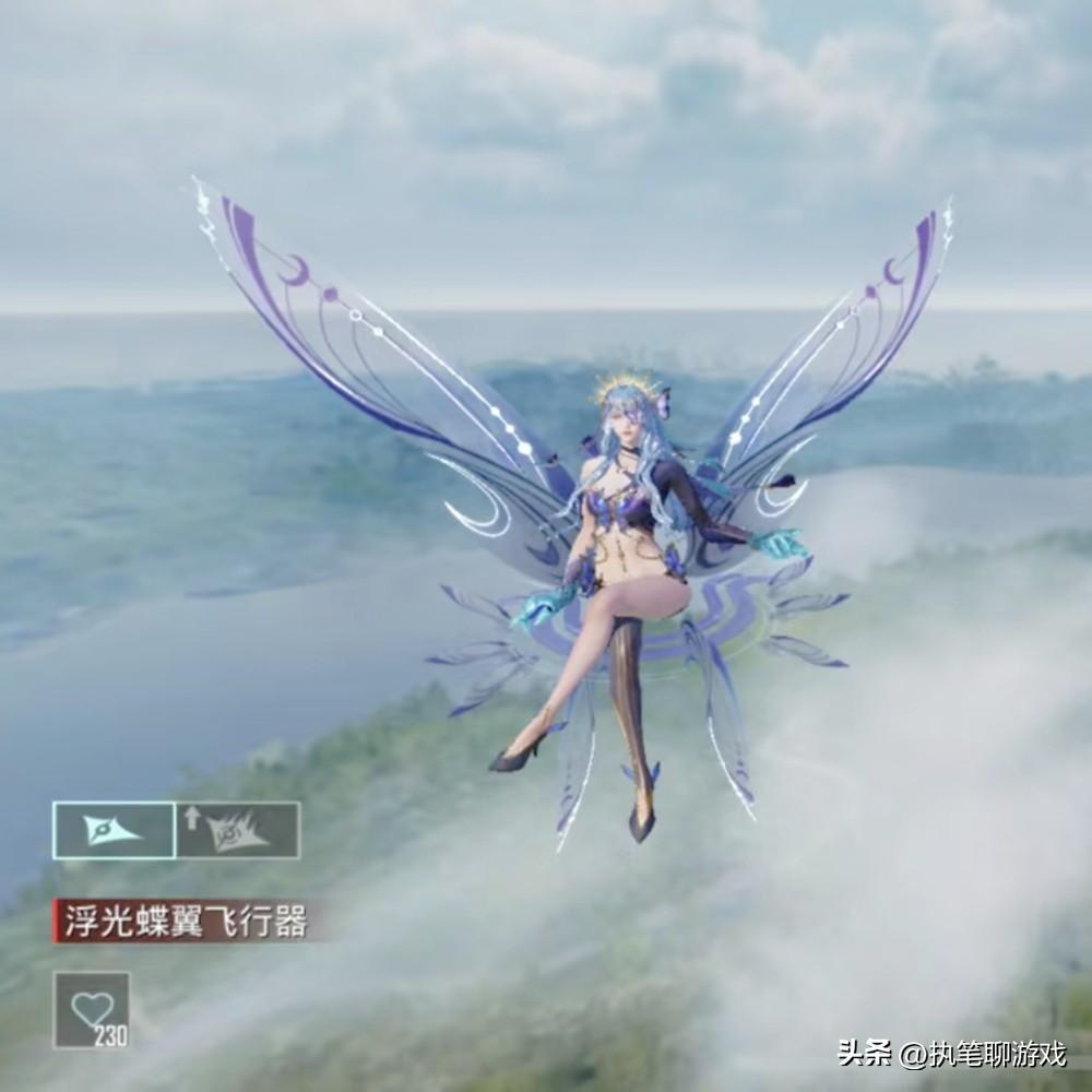 言歸正傳,接下來我們繼續來看PubgM的金裝轉盤,此次的飛行器叫“浮光蝶翼”,雖然是喫雞遊戲中極爲常見的翅膀類型,但是這次卻增加了一個“座位”,這種設計風格還是挺有創意的,比起平日裏看到的“背翅膀”飛行器來講,未來或許會被光子還原到《和平精英》裏。