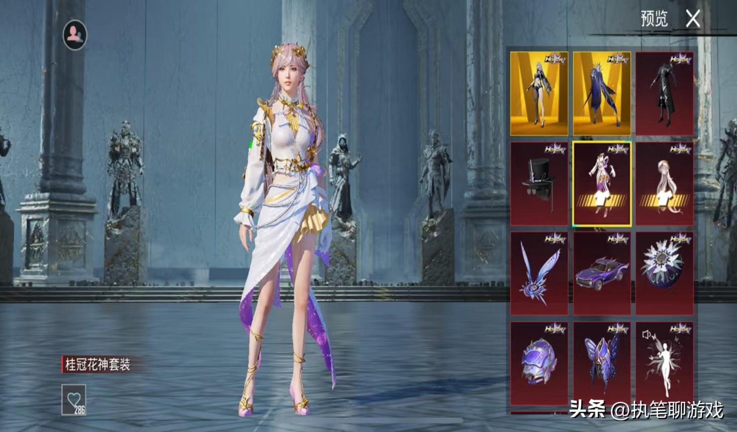 接下來則是此次金裝轉盤裏的2個“副套”,一個叫桂冠花神,一個叫暗夜怪盜,不怕大家笑話,起初看到第一眼的時候,天哥就覺得完全是《和平精英》的畫風,而PubgM平日裏都是以寫實風格爲主,這種略顯花裏胡哨的風格反倒更像是來自和平的美工,你們懂。