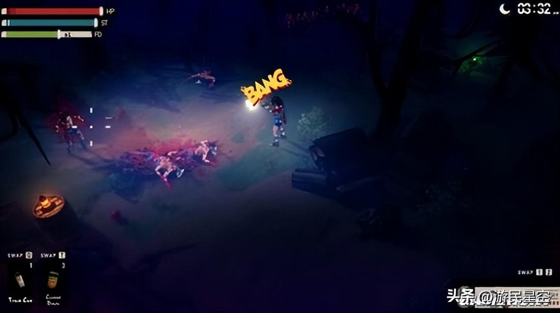 而除了潛行玩法外,遊戲同樣具備一套恐怖遊戲標配的資源管理系統。白天,你需要儘可能地全面探索荒野,搜尋資源製作各種武器與補給品,同時加固好你的避難所;而晚上,面對成羣的各種怪物,你同樣需要做好“打”或“逃”的準備——因爲許多敵人會循聲獵殺玩家。