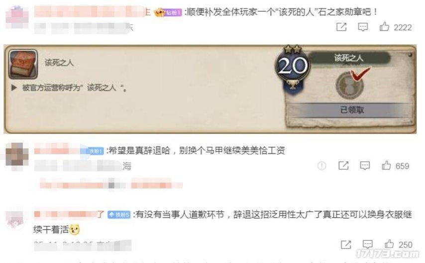 對此有網友調侃,官方應該給全體玩家發一枚“該死的人”石之家勳章。結果真有手快的玩家給P了出來。也有網友懷疑,是不是真的辭退了貓田?還只是讓她換個崗位?
