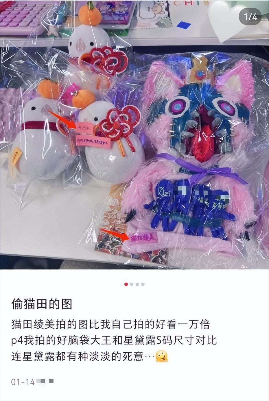 11月8日,“貓田”在直播期間回應了“假公濟私”的問題,說用“甘甘”的照片,是因爲每次都剛好搜到她的返圖,又恰巧發現是親友,兩人只是好閨蜜的關係。