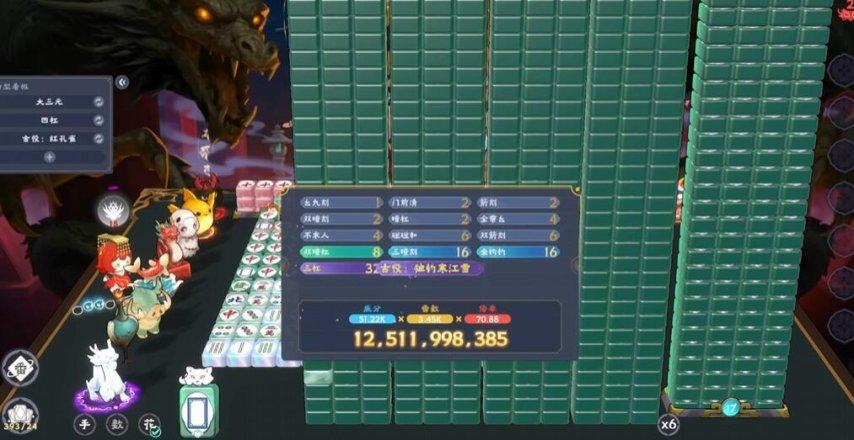 也就是說當構築成型,湊滿倍數和番數,甚至可以無限槓牌,槓到天上去,直接在對手面前砌牆,得分更是直接飆到幾千億,屬於是整個人都爽麻了。