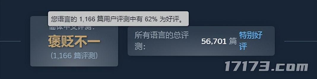 不過,該作品的簡中好評率僅有62%,國內玩家評價數量佔比也比較低,顯然國內玩家在這款遊戲中出現了嚴重的水土不服。