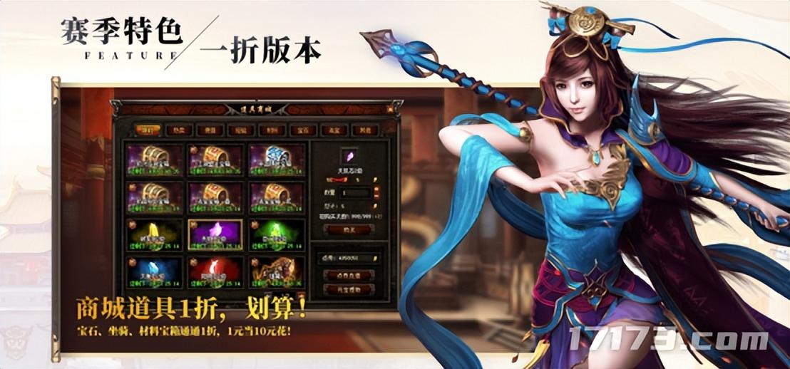 在全新推出的一折版本中,可以享受GM無限商城:1折購買寶石、坐騎以及其他材料,還可參與各類以城戰PK活動爲主以賺取點券獎勵!
