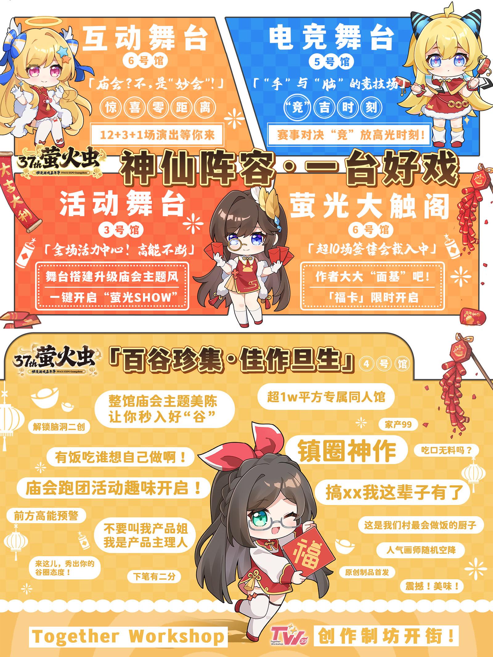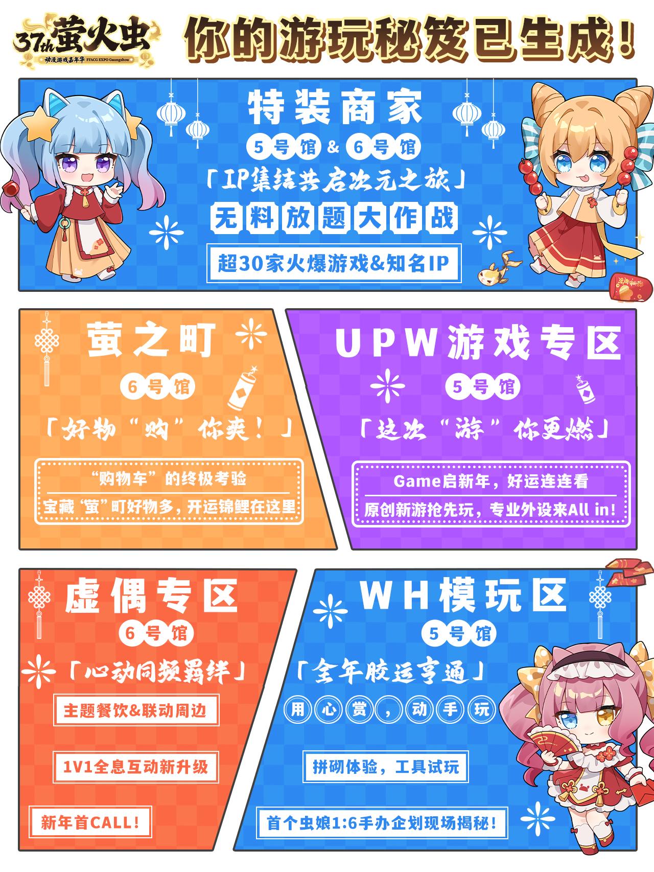 六大展館齊開放,「螢火廟會」暢玩無極限。展會現場不僅匯聚螢之町、UPW 遊戲專區、虛偶專區、WonderHobby 模玩區等熱門板塊,火爆遊戲與超高人氣 IP 集體集結,遊玩祕笈已備好待大家開啓;更有大會場刊活動、螢光遊樂園、螢火食肆組成廟會三重好運,喫、喝、玩、樂一站式全體驗,承包你的元旦歡樂時光。