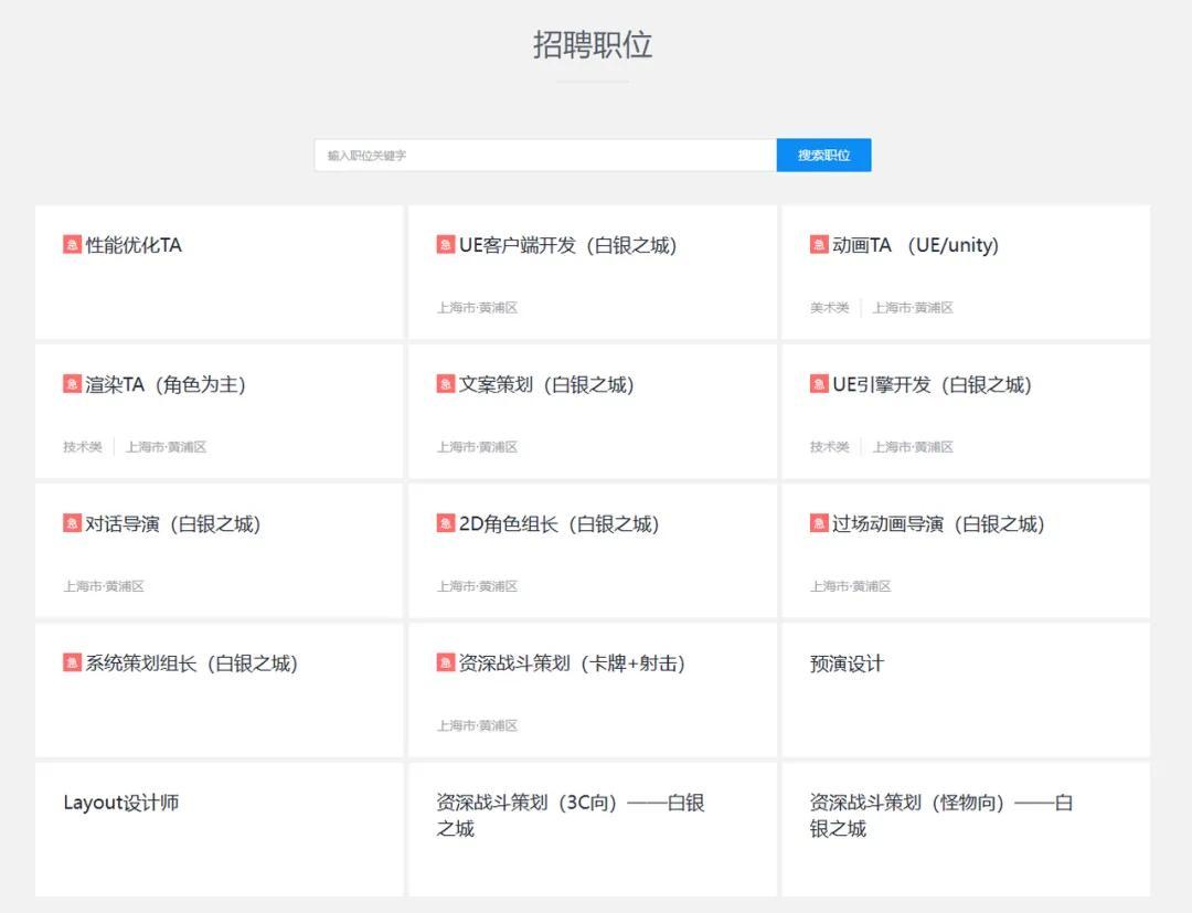 從樂元素官網的招聘頁來看,《白銀之城》項目仍有大量崗位待招。上述HR表示,歡迎有興趣的朋友私信他。願意瞭解更多的朋友,也可以前往樂元素上海所在的外灘詳聊。他請大家喝咖啡。