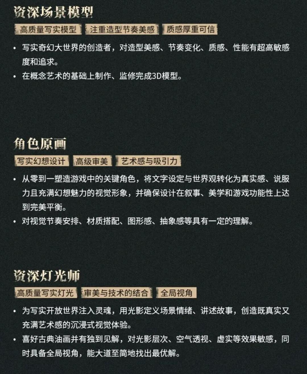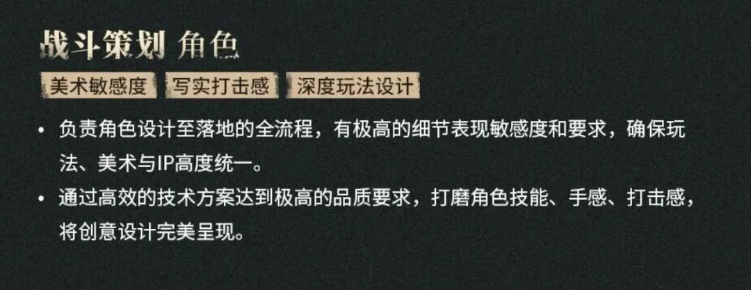 根據崗位描述,戰鬥系統是研發重點之一。可以看出,遊戲強調寫實打擊感和動作手感,同時要求玩法、美術與IP的高度統一。
