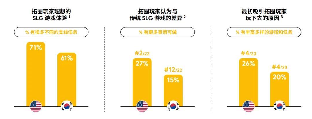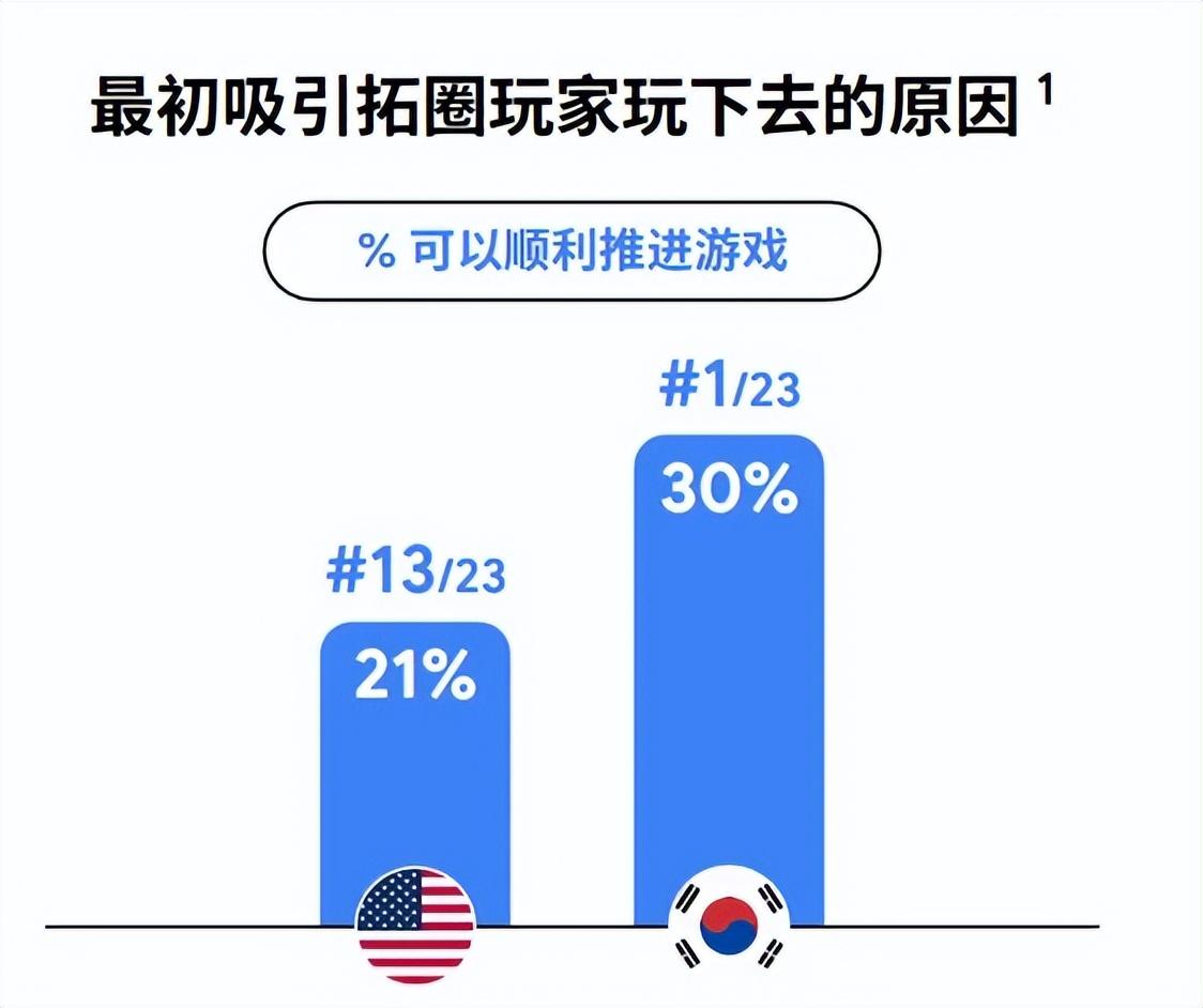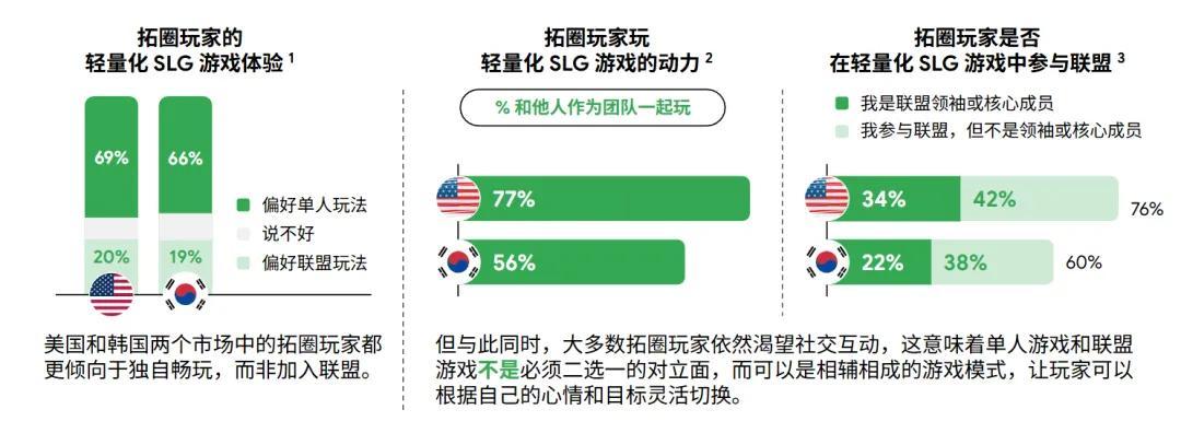 不過有意思的是,根據《洞察》數據顯示,無論是美國的還是韓國的拓圈玩家,大部分人都偏好單人玩法。但這部分玩家又並非完全排斥社交,相反,「和他人作爲團隊一起玩」同樣也是他們長線遊戲的動力。