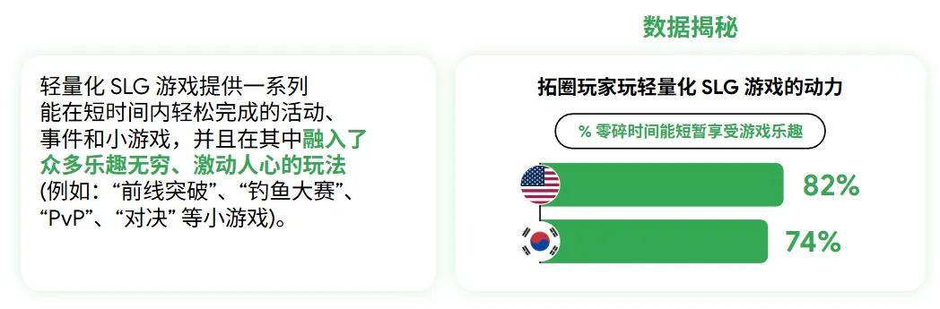 根據《洞察》的數據顯示,有近三分之一的資深玩家下載輕量SLG,就是因爲這些遊戲提供了新的刺激。