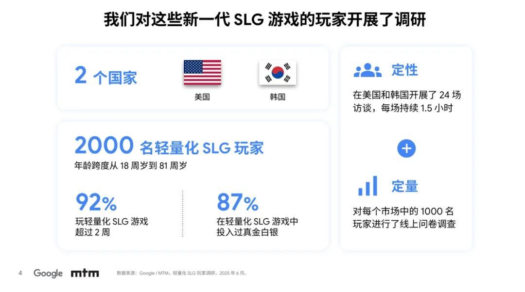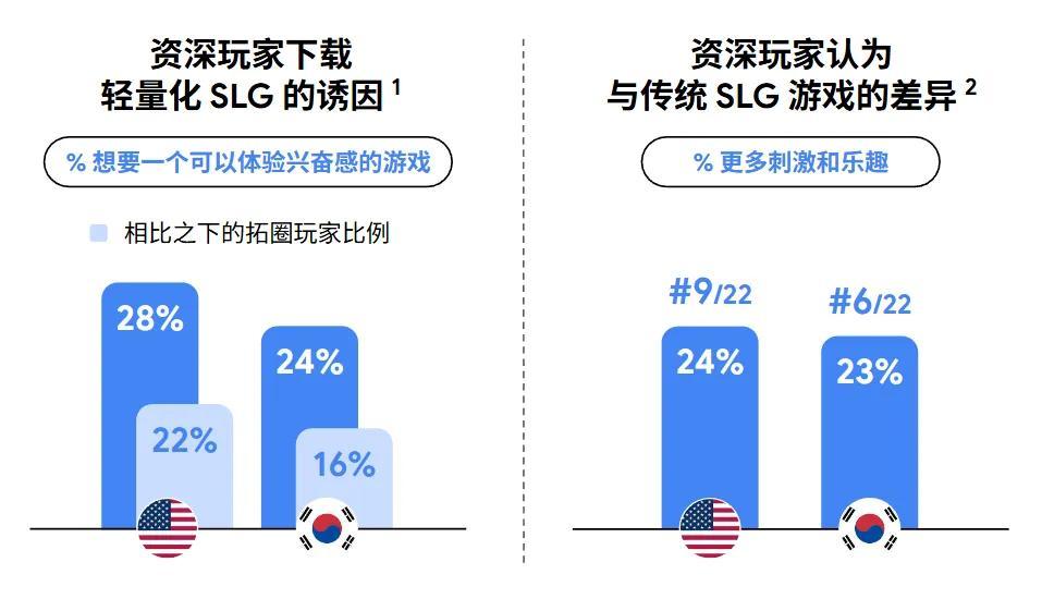 而最近,Google又發佈了研究美韓市場的《輕量化SLG玩家洞察》(下文簡稱《洞察》),拿出了更加詳細的數據,以及大量基於真實海外玩家的訪談內容(文末有完整報告可供下載)。