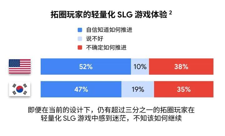 不過值得注意的是,即便如今的輕量SLG遊戲在很多人看來已經非常簡單,但根據《洞察》的數據顯示,仍會有超過三分之一的拓圈玩家在遊戲中感到迷茫,不知該如何繼續。