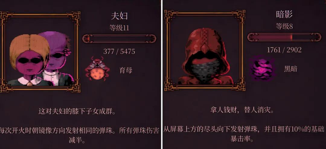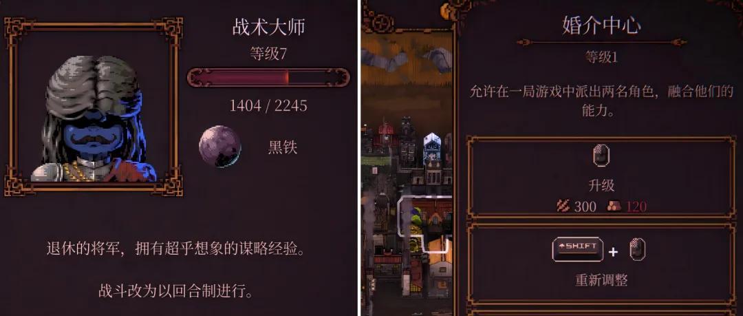 舉例來講,大部分新角色的解鎖,都需要你建成對應居所;局內屬性補正、數值加成也要由對應建築升級;彈珠和被動物品欄位的拓展同樣如此……更離譜的是,連雙角色遊戲模式都可以由“婚介所”來解鎖。
