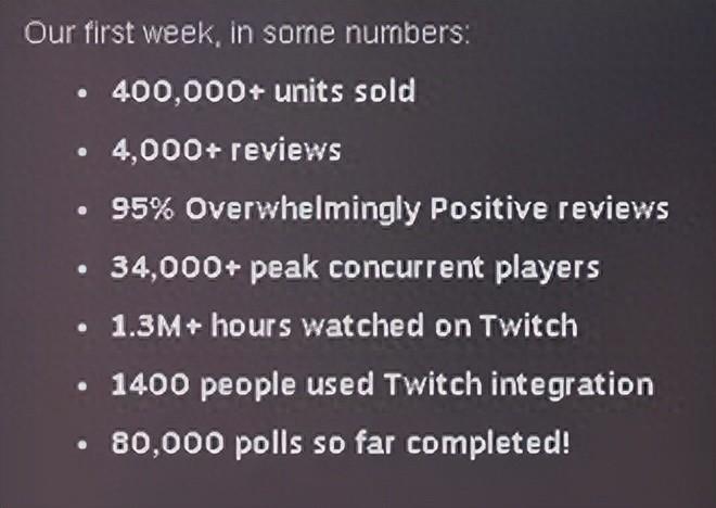 7人小團隊開發,遊戲首周售出40萬份,收入保守估計也在4000萬元以上,同時在線人數超過34000,Steam好評率超過90%……得有多好玩,才能成就這樣的小團隊爆款?