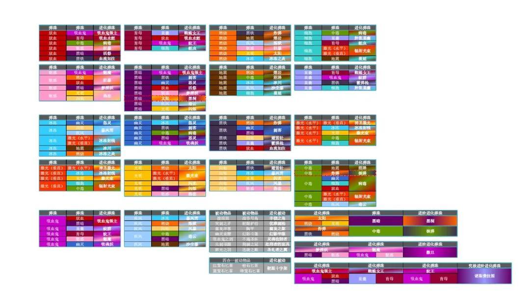 其次,在Roguelike部分,《球比倫戰記》也比某些公式化的倖存者like做得更細緻。遊戲中,每兩種升到3級的彈珠都可以兩兩融合,如果存在搭配還可以進化產生新效果,進化之後的彈珠又能融合……
