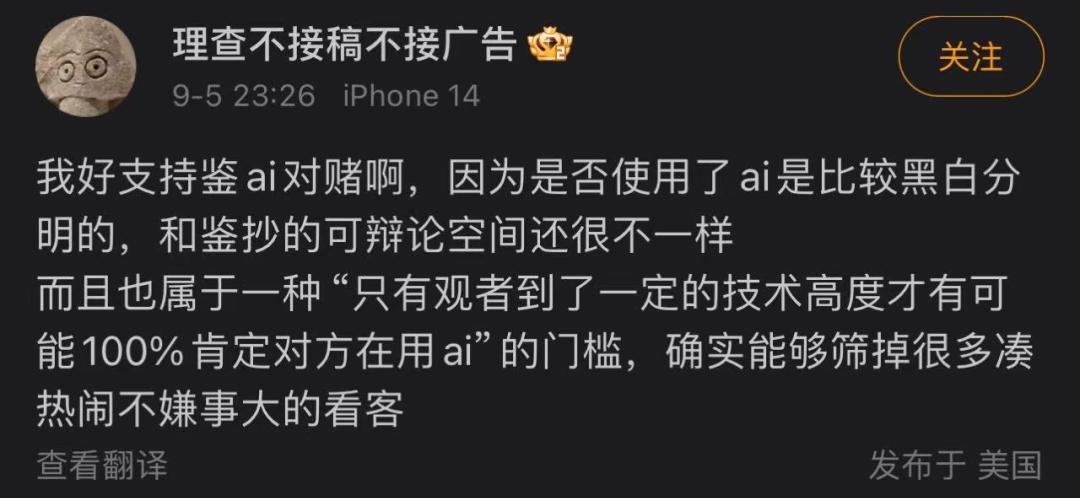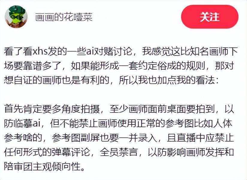 不少紅人畫家,也下場支持AI對賭這種模式的流行,並站在一個較爲客觀的立場,分析之後應該怎麼確保AI對賭的判決是相對準確的。