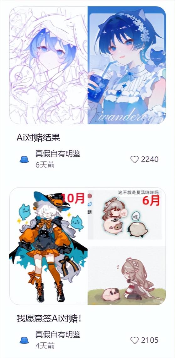 畢竟,早在這次事件之前,就已經有不少畫師被鑑AI後,採取過類似的對賭協議進行自證與維權。然而,誰也沒想到,在繪圈大佬@理查不接稿不接廣告,圈內人稱爲老累的畫師上演一出“美軍突襲(因爲她是美籍華裔)”之後,事件熱度不降反升,越來越多之前看到不敢吱聲的畫手也開團秒跟。