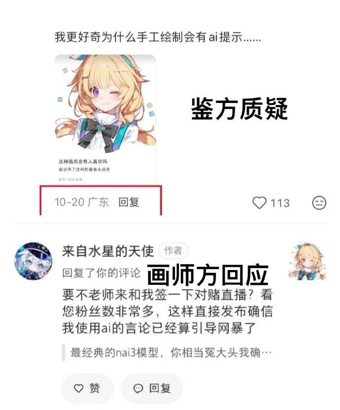 更何況,鑑AI對於鑑方來說成本低,鑑錯了也沒太大損失。但對許多清白的畫師來說,剖腹取粉有着無法抵消的傷害,自己弄得身心俱疲不說,還會影響在圈內的聲譽。