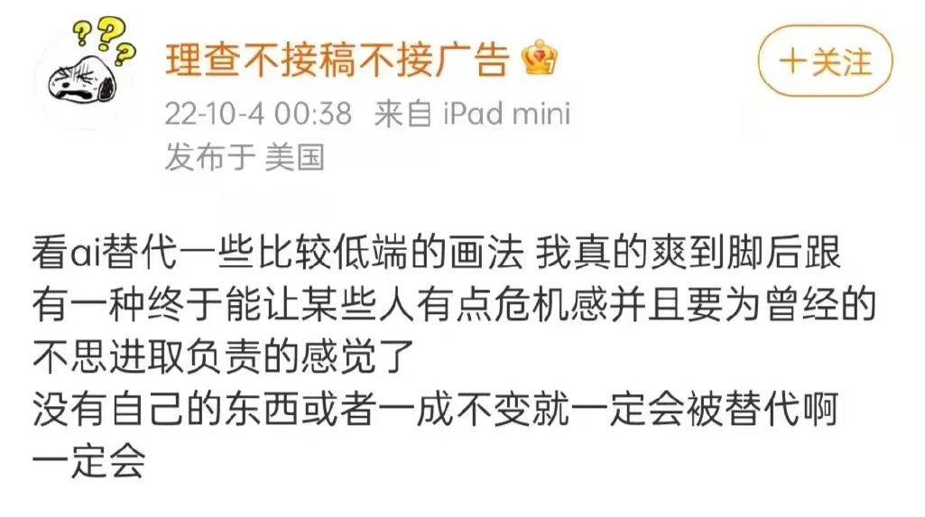 她因爲一則微博疑似模棱兩可地支持AI,引得無數同行反駁。