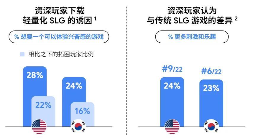 再看資深玩家,除了前面提到的視覺吸引力,他們對輕量化SLG的主要興趣點還有“更強爽感”,Google報告提到,“這也是資深玩家認爲輕量化SLG真正超越傳統SLG的地方”。