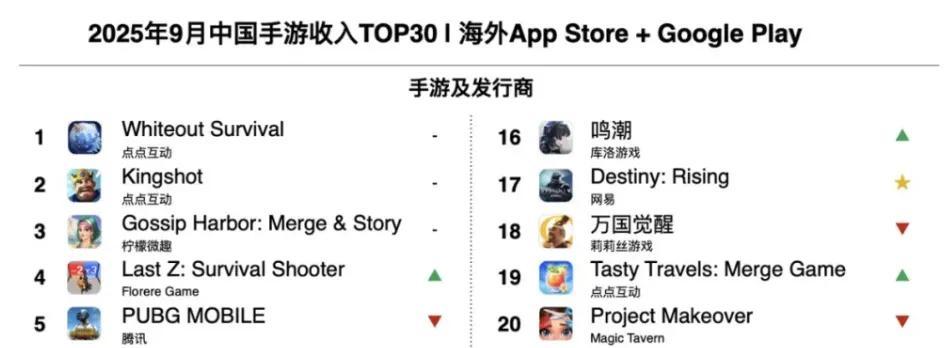 《Whiteout Survival》狂飆,開啓了輕量化SLG時代後,點點互動又掏出了一款同路線的《Kingshot》,短短數月便與前者會師,包攬了國產手游出海收入冠亞軍。