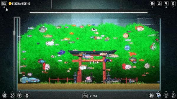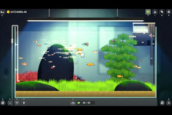 購買魚苗、投餵魚食,自動餵食,再將長大的魚兒賣掉換金幣購買更多魚苗、魚缸,或給魚食升級漲更多經驗,便可購買更多等級的魚包,享受普通、閃光、多彩魚兒的抽卡快感。