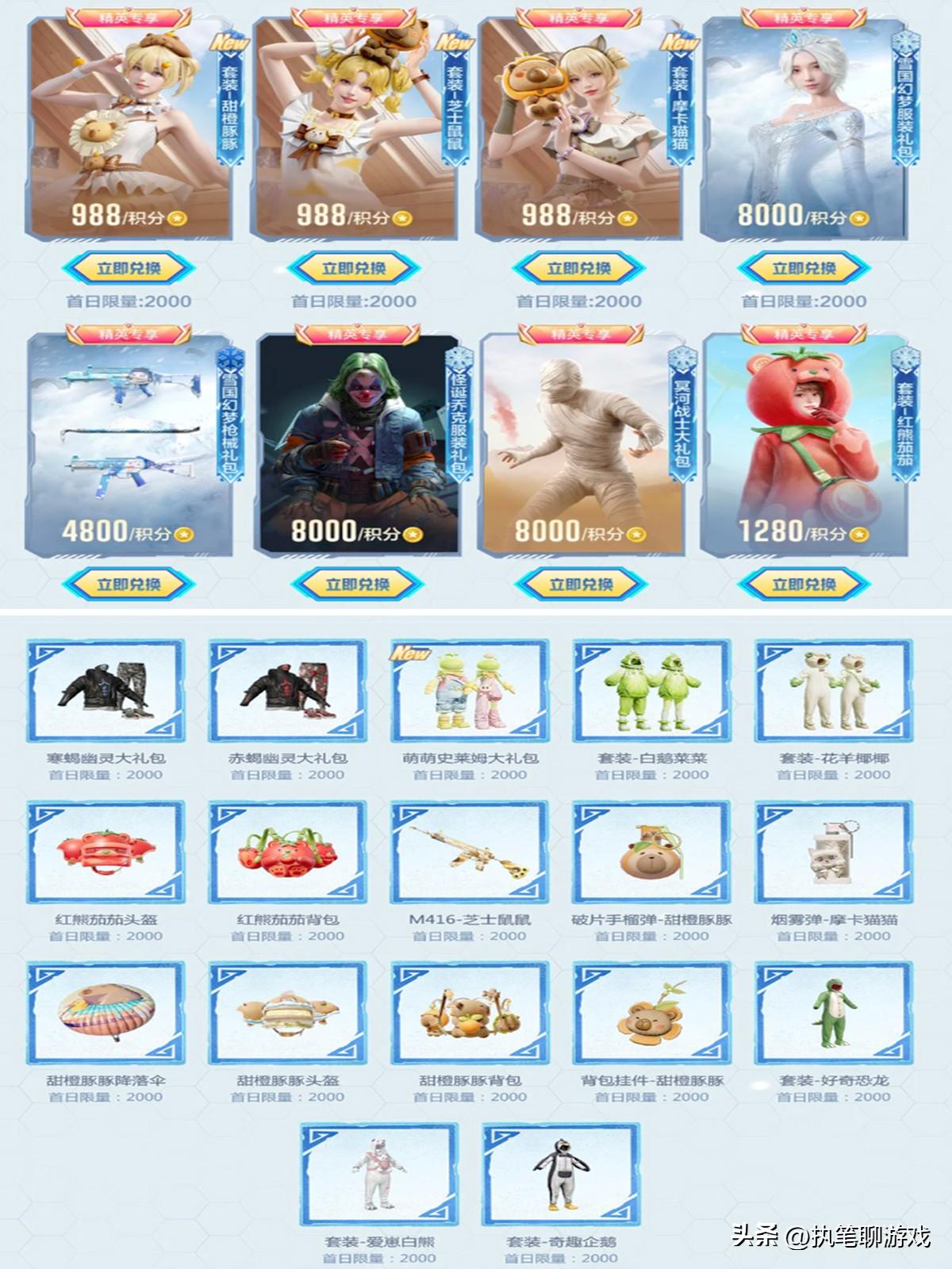 如圖所示,此次的“精英手冊”不僅出現了3個專屬首發的新套裝,而且還出現了被玩家奉爲初代經典的“三巨頭”:雪國夢幻、怪誕小丑、冥河戰士,除此之外還有人氣極高的紅熊茄茄,綽號“小番茄”,人稱又菜又愛玩!