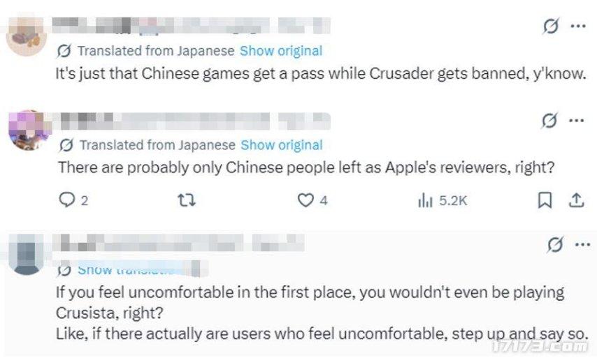 有國外網友調侃,看來《閃耀之星騎士》在中國拿到版號了。還有網友吐槽,如今蘋果審覈團隊裏就剩中國員工了。還有暴怒玩家開噴,如果真的覺得被冒犯,當初就不該來玩這款遊戲,所以感到被冒犯的用戶請站出來說話。