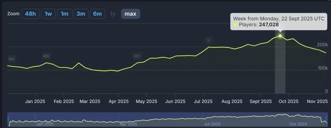 SteamDB也顯示,遊戲在Steam的最高在線人數達24.7萬,可以說是目前唯一躋身平臺頭部的國產射擊遊戲。