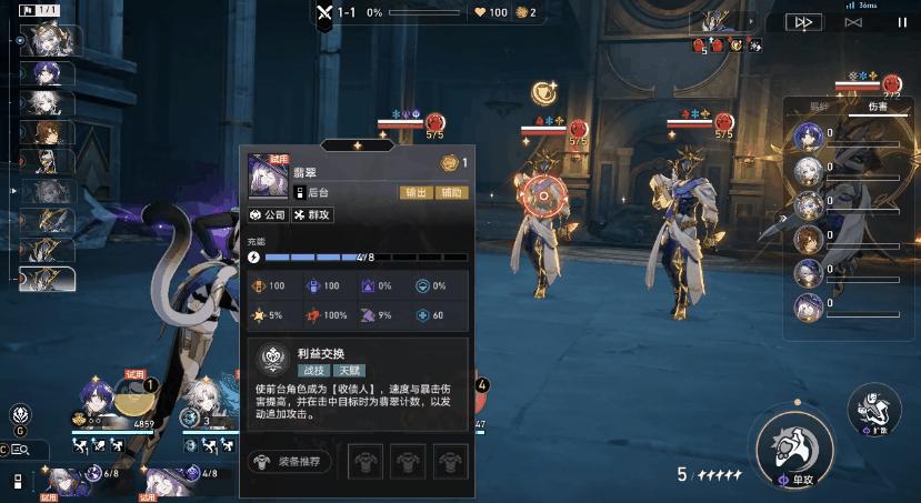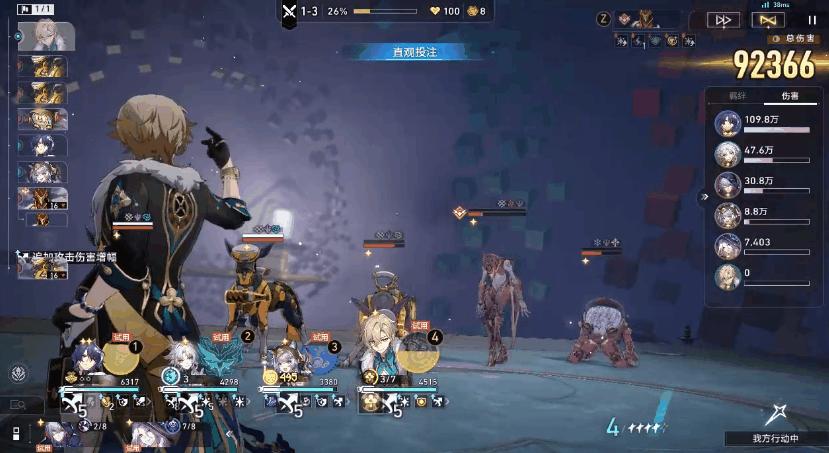 說其門檻低,並不是一句虛言。“貨幣戰爭”的戰鬥邏輯非常簡單,所有角色都有“前後排”的站位區分,並由此進入星鐵的經典回合制戰鬥環節。前排角色將會由玩家直接操控,直面敵人奮勇殺敵,而如翡翠等後排角色則可以根據自己的角色天賦被動戰鬥,併爲戰鬥賦予增益效果。