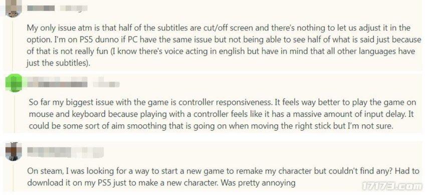 當然也有吐槽遊戲的,例如不少玩家就表示遊戲的UI太複雜,PS版字幕顯示不完整,手柄體驗不佳,刪除角色操作太複雜(需要網易賬號,還要發郵件申請)等問題。
