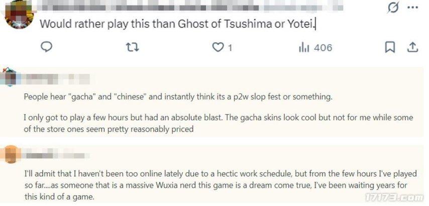 也有網友就表示,相比《對馬島之魂》或者《羊蹄山之魂》來說我更喜歡這款遊戲。還有網友表示,一開始聽到“中國遊戲”“抽卡遊戲”以爲是垃圾,結果玩上手後發現真香。