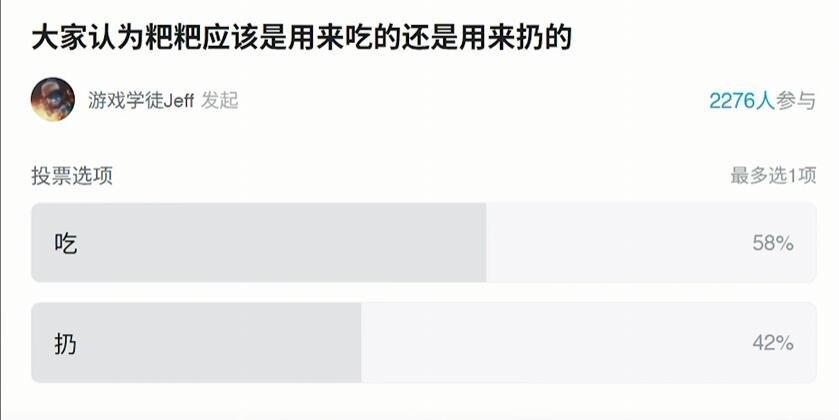 而且製作人還特別聽勸,例如遊戲裏廁所常見的那個“粑粑”一開始是用來丟的,結果就有不少玩家反饋希望可以喫,製作人Jeff真在B站發起投票:粑粑到底該喫還是該扔?結果58%的玩家投了“喫”。