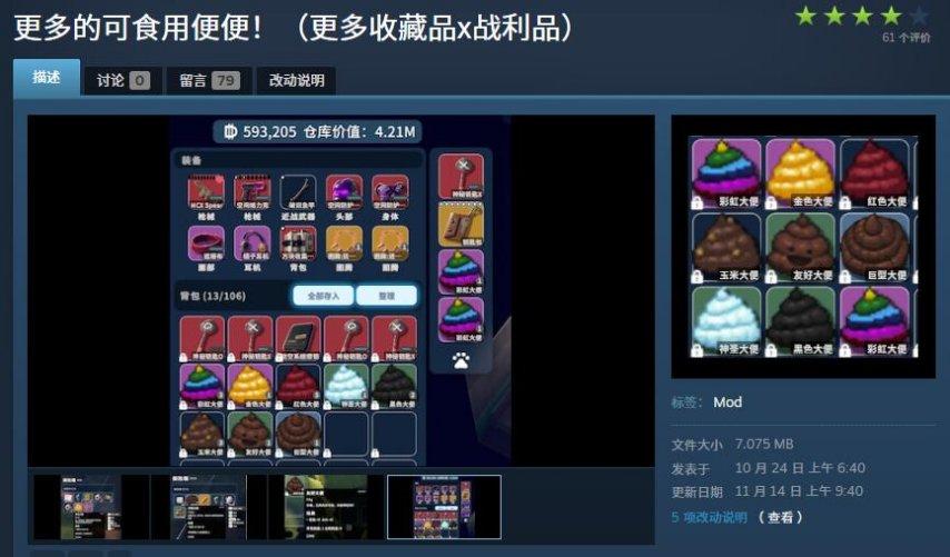 不說別的,光是粑粑就被玩家研製出了更多“可口”的品種,什麼“草莓味粑粑”“黃金粑粑”,你甚至可以通過打MOD邊打邊隨地拉粑粑……