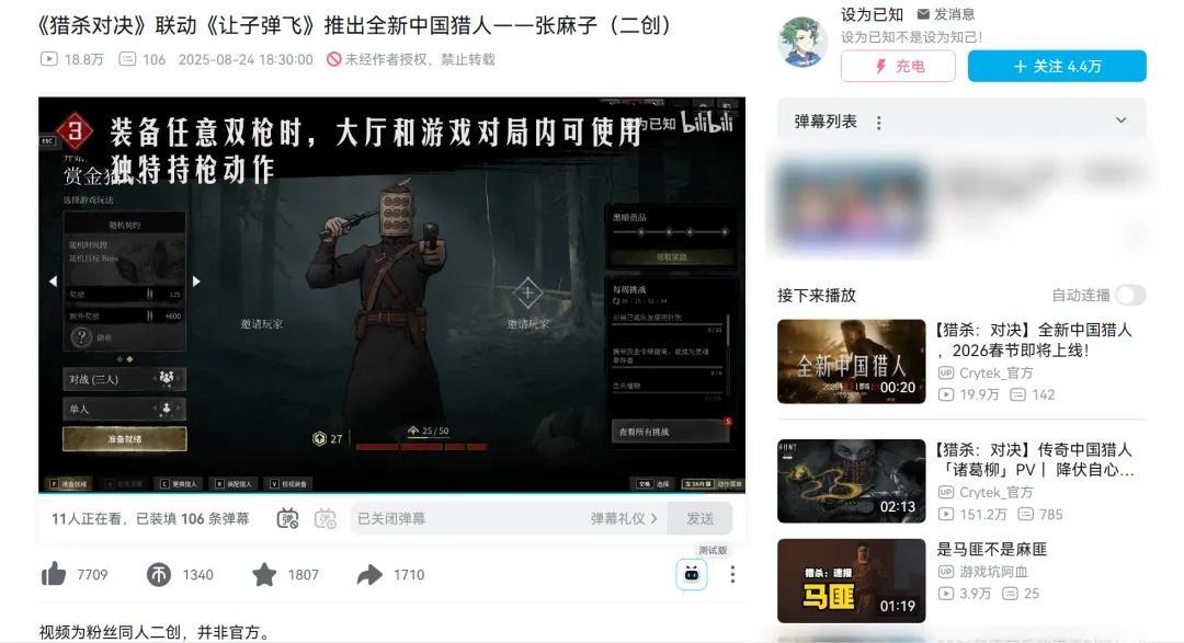 一個是化用了《道詭異仙》元素的「諸葛柳」,其PV是B站官號播放量最高的視頻;另一個則是本次線下首曝,將於春節上線的麻匪角色——其靈感,就來自遊戲玩家《讓子彈飛》的同人二創及呼聲。