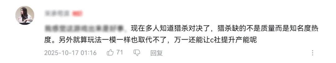 過硬的產品力,加上游戲不錯的市場成績,也讓一部分玩家對遊戲的熱度保持樂觀:雖然HUNT-like的遊戲變多了,但大家的體驗各不相同,萬一這波熱度還能刺激官方提升產能,重視國服玩家呢?也不是壞事。
